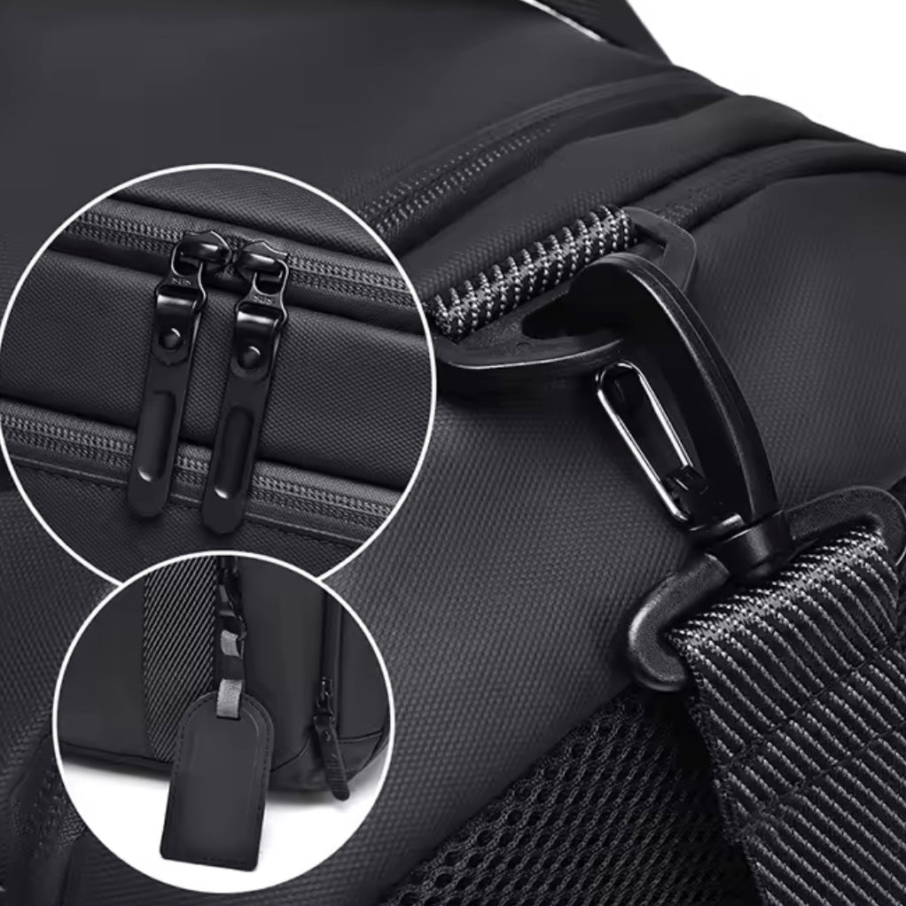 - Praktisches Schuhfach: Separates belüftetes Fach für Schuhe oder nasse Kleidung – hygienisch und sauber getrennt vom Hauptfach.